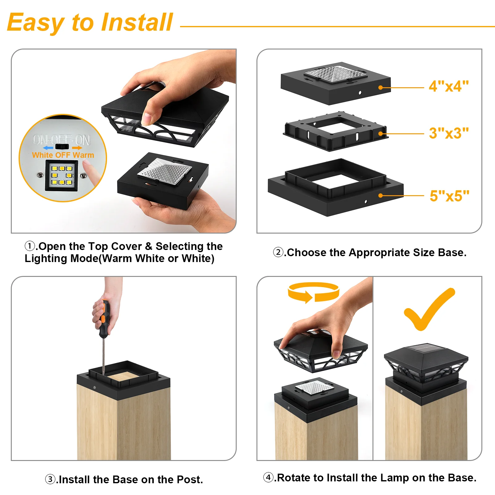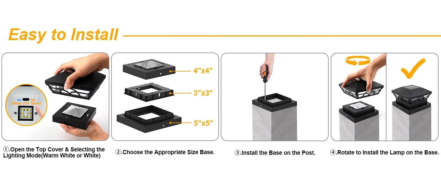 Solar Post Light Outdoor Waterproof Fence Pillar Lamp