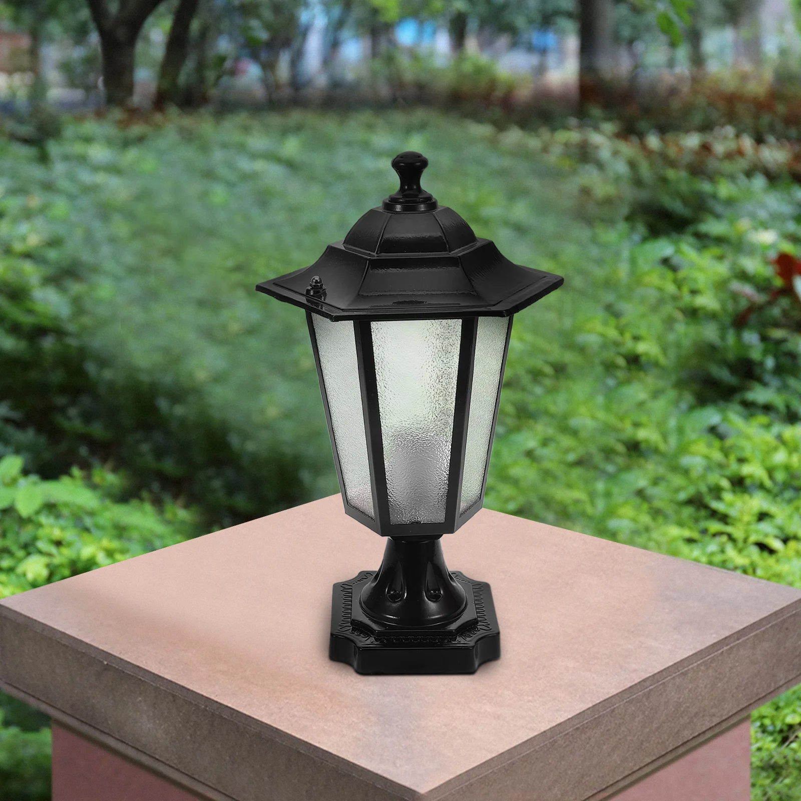 The Outdoor Pillar Lamp is a perfect addition to any outdoor space. With its unique design and six-sided villa style, it adds a touch of European charm to your courtyard. Made with glass and metal materials, it is waterproof and dustproof, making it suitable for outdoor environments and ensuring durability. It can be easily installed on door pillars, providing bright and soft lighting to enhance security. Its compact and exquisite size makes it suitable for various outdoor places such as gardens and courtyards.