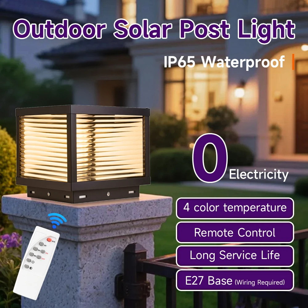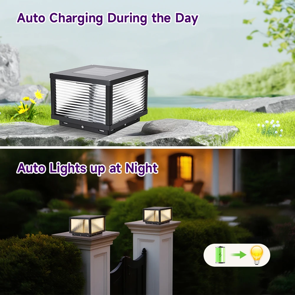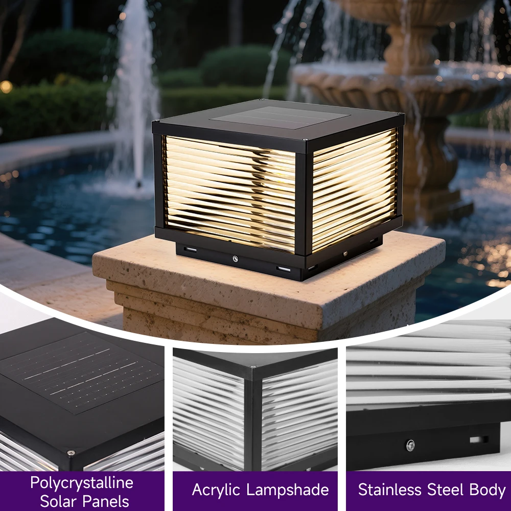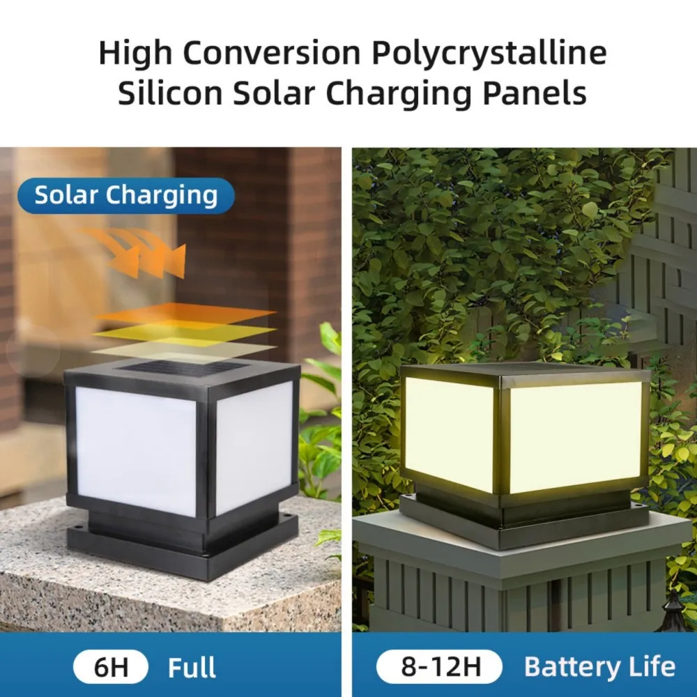 Solar Post Lamp Waterproof Outdoor Pillar Column Garden Light