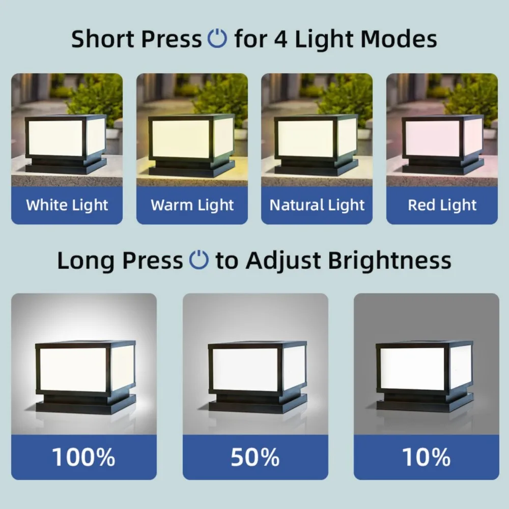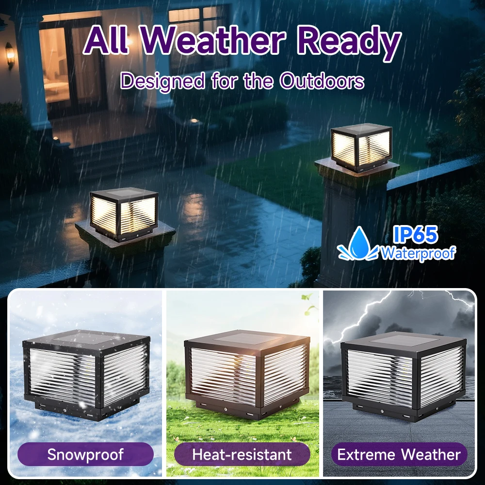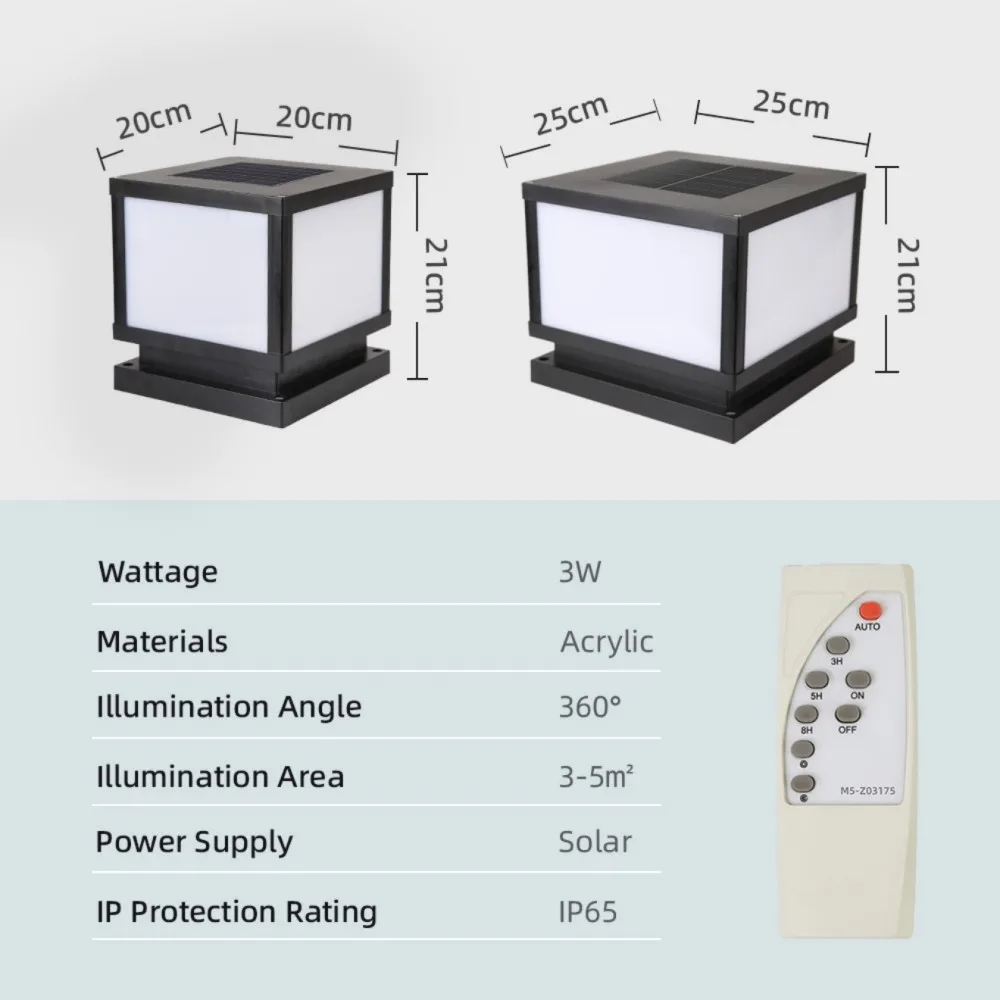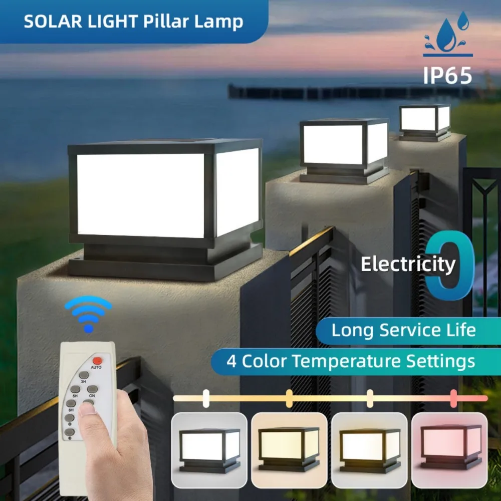 Solar Post Lamp Waterproof Outdoor Pillar Column Garden Light