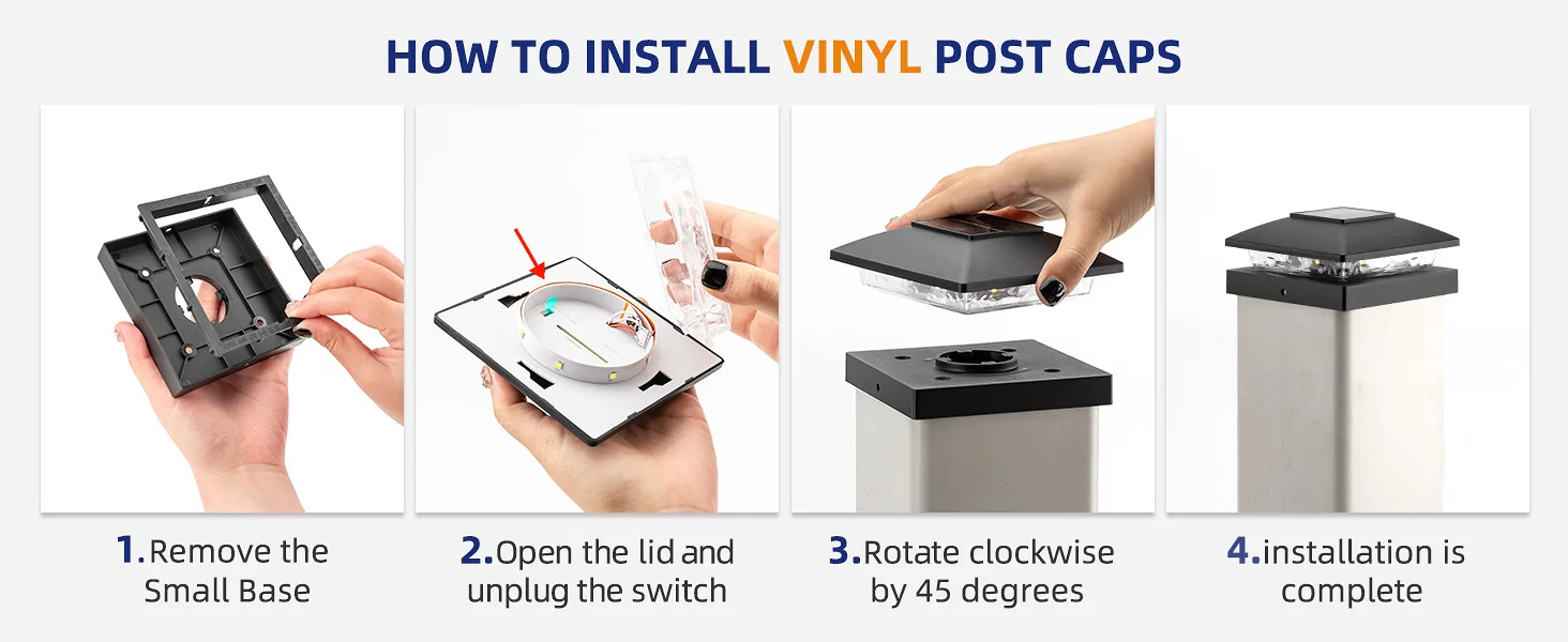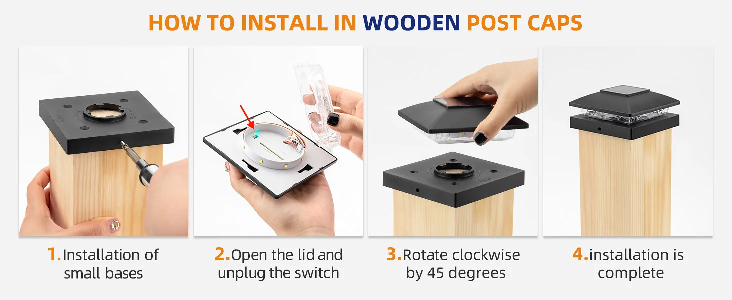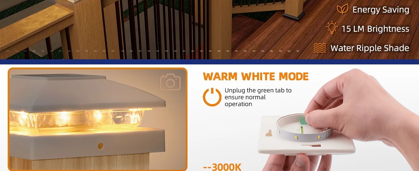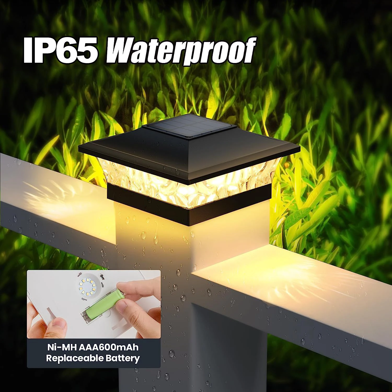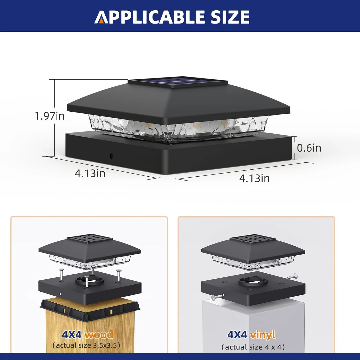 Outdoor Solar Post Cap Lights Solar Powered 3 Modes Fence Lamp Waterproof LED Post Light For 4 Inch Wood Posts Yard Garden Outside for Deck Railing Porch Mailbox Wood Posts