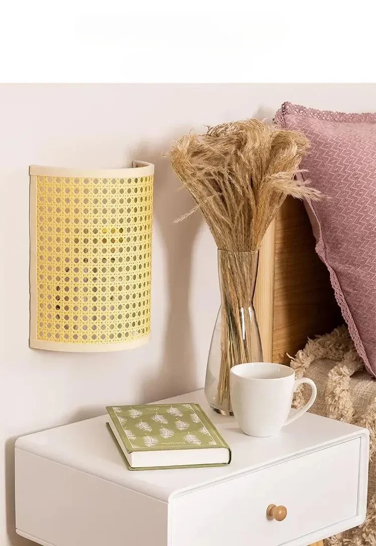 Rattan Wall Lamp Natural Wicker Bedroom Living Room Light