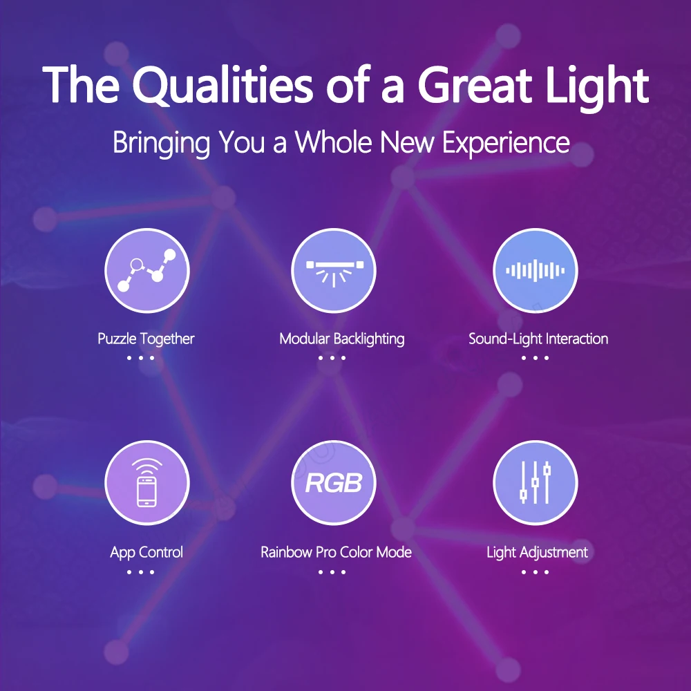 RGB Smart Wall Panel Light Voice Control Gaming Room Lamp