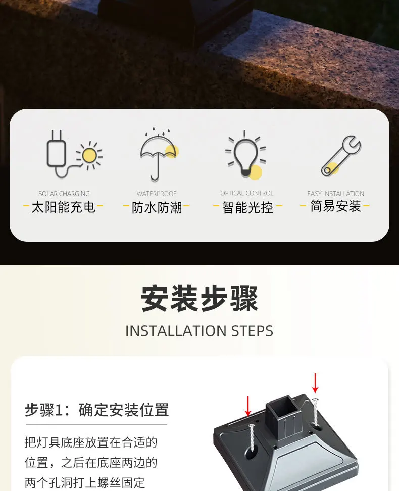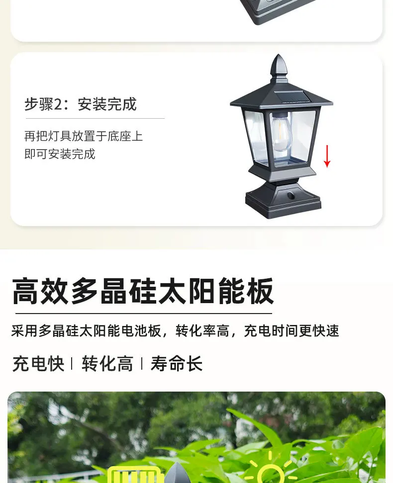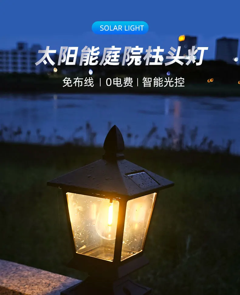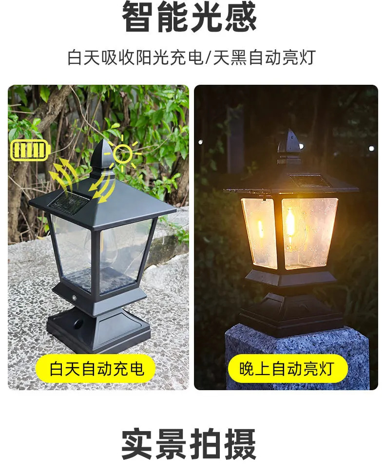 Solar Garden Pillar Light Waterproof Outdoor Villa Lamp